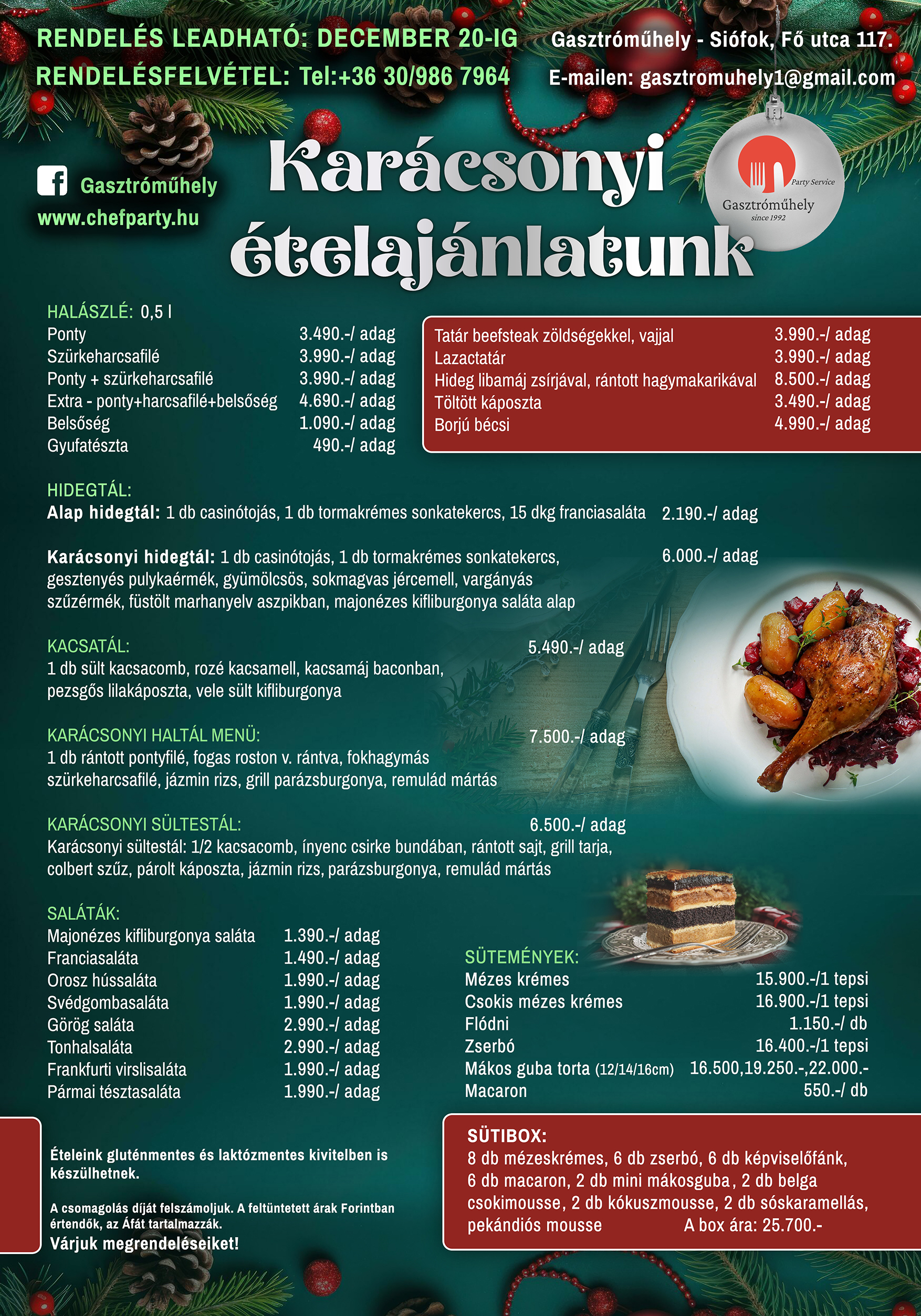 Party Service, Hideg és meleg ételek Karácsonyi, házi, kézműves sütemény ajánlatunk Hidegtálak Saláták Szendvicsek Meleg ételek